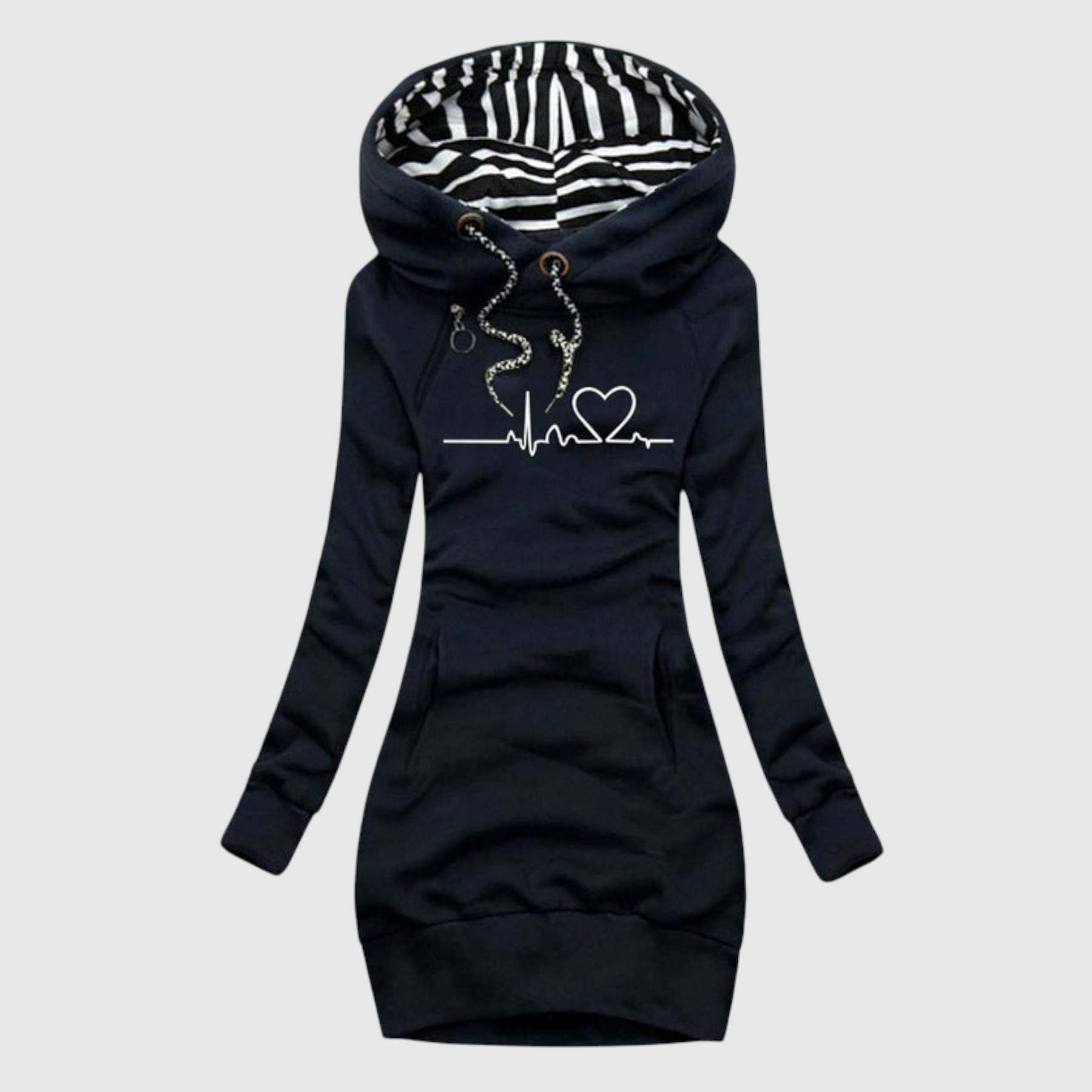 Lépj be a télbe a stílus és a kényelem tökéletes kombinációjával – a Kristina pulóverruhával! Modern szív mintájával ez a sikkes dizájn eleganciát ad a ruhatáradhoz. Akár bulizni mész, akár egy pihentető estét töltesz otthon, ez a sokoldalú pulóverruha az első választásod a melegség és a kifinomultság érdekében.